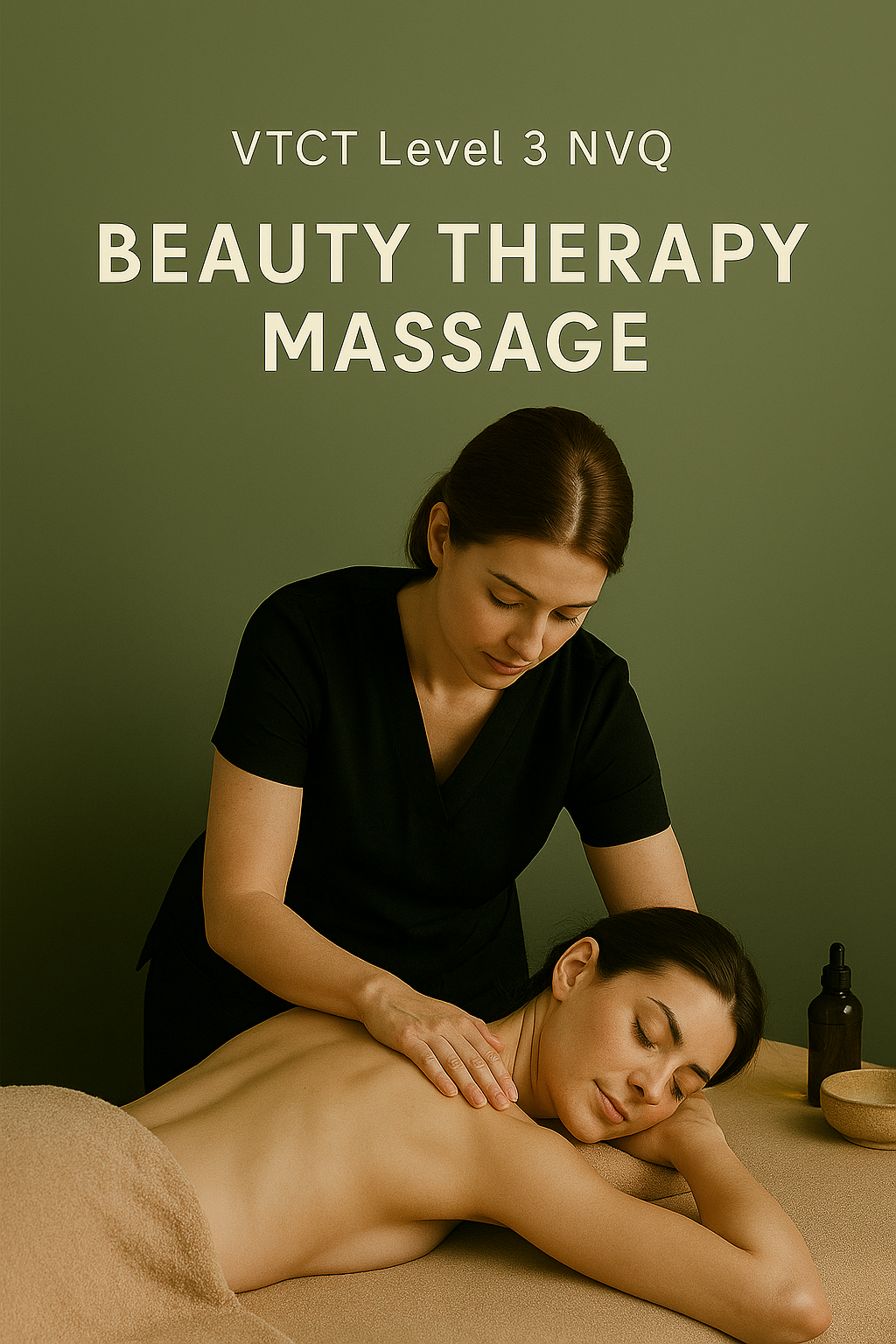 The VTCT Level 3 NVQ Diploma in Beauty Therapy Massage is a fast-track, VTCT regulated qualification ideal for those who wish to become professional massage therapists. Internationally recognised, this vocational course prepares you with the practical skills and advanced techniques needed to work in salons, spas, or as a self-employed or mobile therapist. It also enables you to gain insurance and legally offer massage treatments, open your own practice, or expand your existing beauty services. With expert support, small group training, and hands-on experience, this qualification is your gateway to a rewarding massage career.